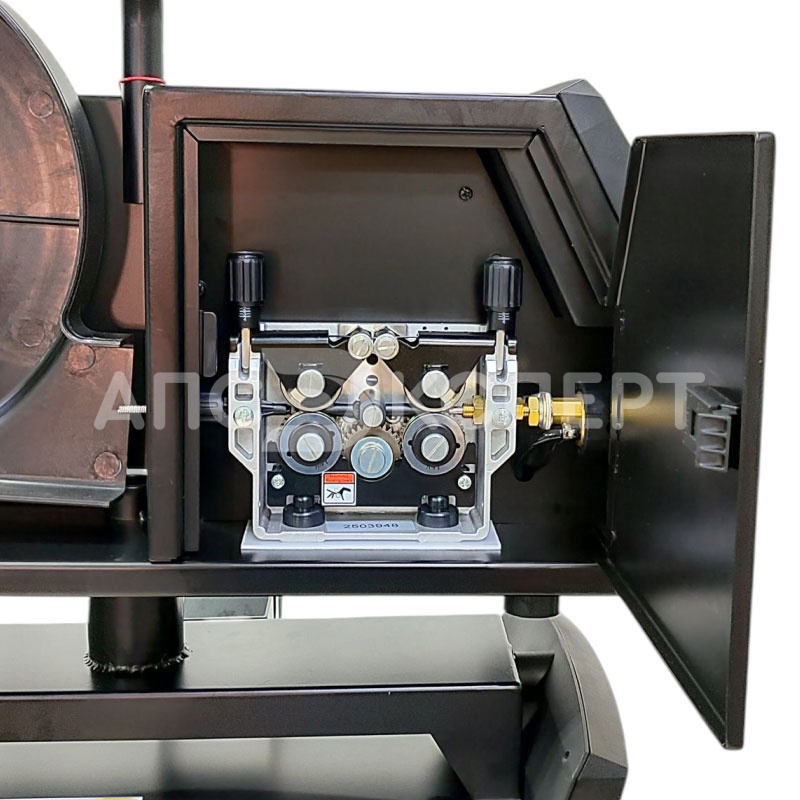 - Подающий механизм сварочной проволоки оснащен панелью управления.
